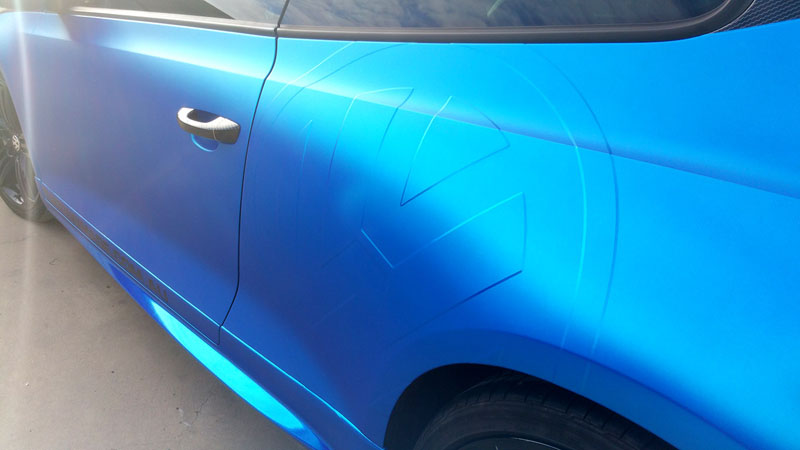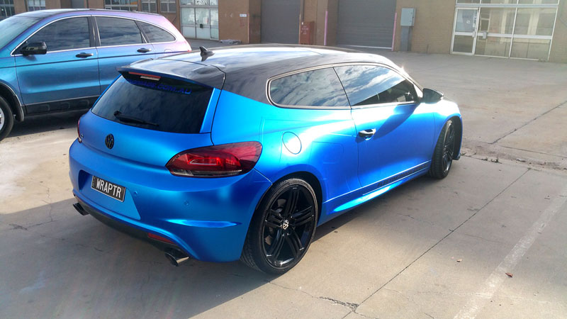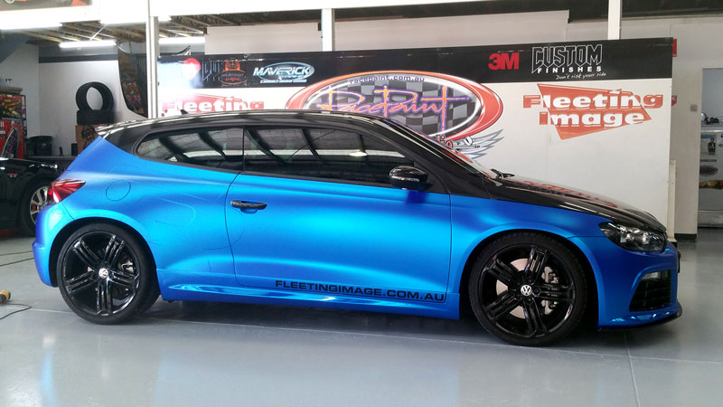 Promotional full wrap for Fleeting Image, owned and driven by Lucy Evans using APA blue matte chrome with blue chrome accents. Turret uses Arlon Carbon Fibre. Main photo by Jake at Blacklisted Visions.